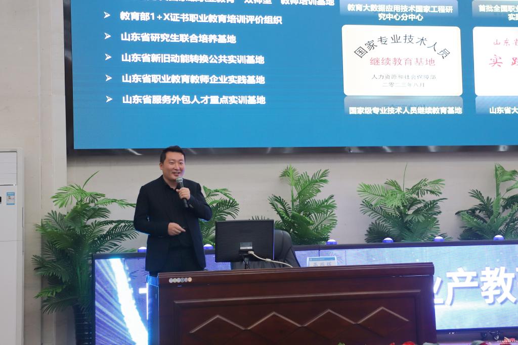 会上,与会领导共同按下启动键,宣布甘肃电子信息行业产教融合共同体成立,并为理事长、副理事长及理事单位授牌。会后,兰州交通大学电子与信息工程学院严天峰教授、浪潮软件股份有限公司西北区营销总监高丙辉分别作了主旨演讲。