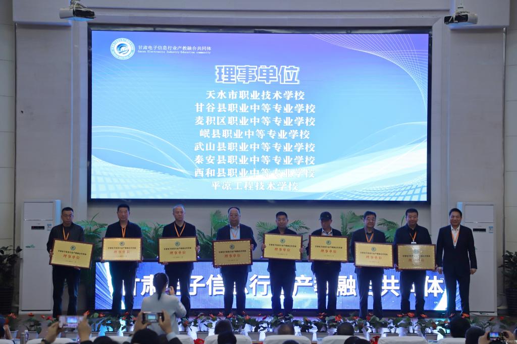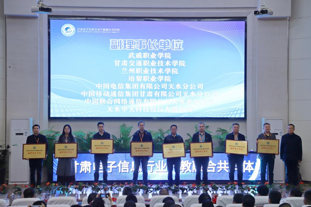 陶英平表示,推动电子信息产业高质量发展,是我们全面贯彻落实党的二十届三中全会精神、因地制宜发展新质生产力、打造国家重要先进制造业高地的必由之路。共同体的成立,聚合了产业界、科技界、教育界的资源要素,搭建了产业发展、科技研发、教育教学一体的综合平台。希望共同体充分发挥背靠产业、连接高校、服务职业院校的资源优势,助力电子信息行业建设,推动产业发展与人才培养同频共振,培养更多的高素质技术技能人才,为推进甘肃省新型工业化和强工业行动提供坚强支撑!
