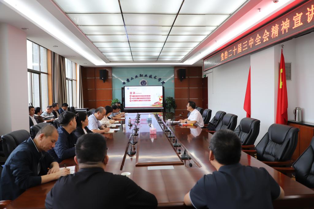 坚葆林结合学校发展实际,谈改革、谈思路、谈举措,从进一步明确我校办学目标和定位、办学体制机制改革、专业优化调整、人事制度改革、分配制度改革、干部制度改革等六个方面,对学校如何贯彻落实党的二十届三中全会精神进一步深化改革举措做了具体解读,为我校高质量发展提出了要求。同时,要求全体党员认清时代定位、把握内涵要求、理顺思想脉络,主动入位、勇担使命,坚持把学习领会与本职工作融会贯通,把进一步全面深化改革的战略部署转化为推进学校事业发展、推动教育教学工作提能增效的强大动力,更好肩负起“为国育人、为党育才”的重要使命。