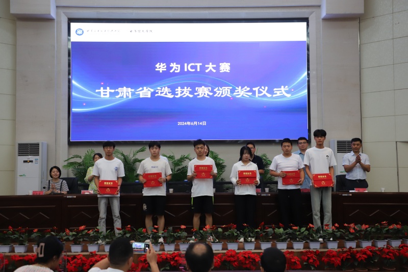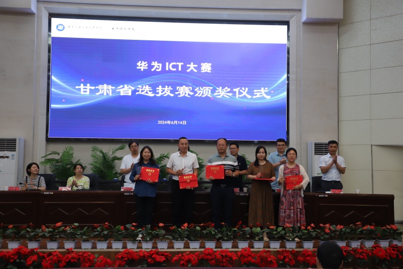 会议宣布了2023—2024华为ICT大赛、甘肃省实践赛-网络赛道获奖选手和指导教师名单并为获奖教师和学生颁奖。