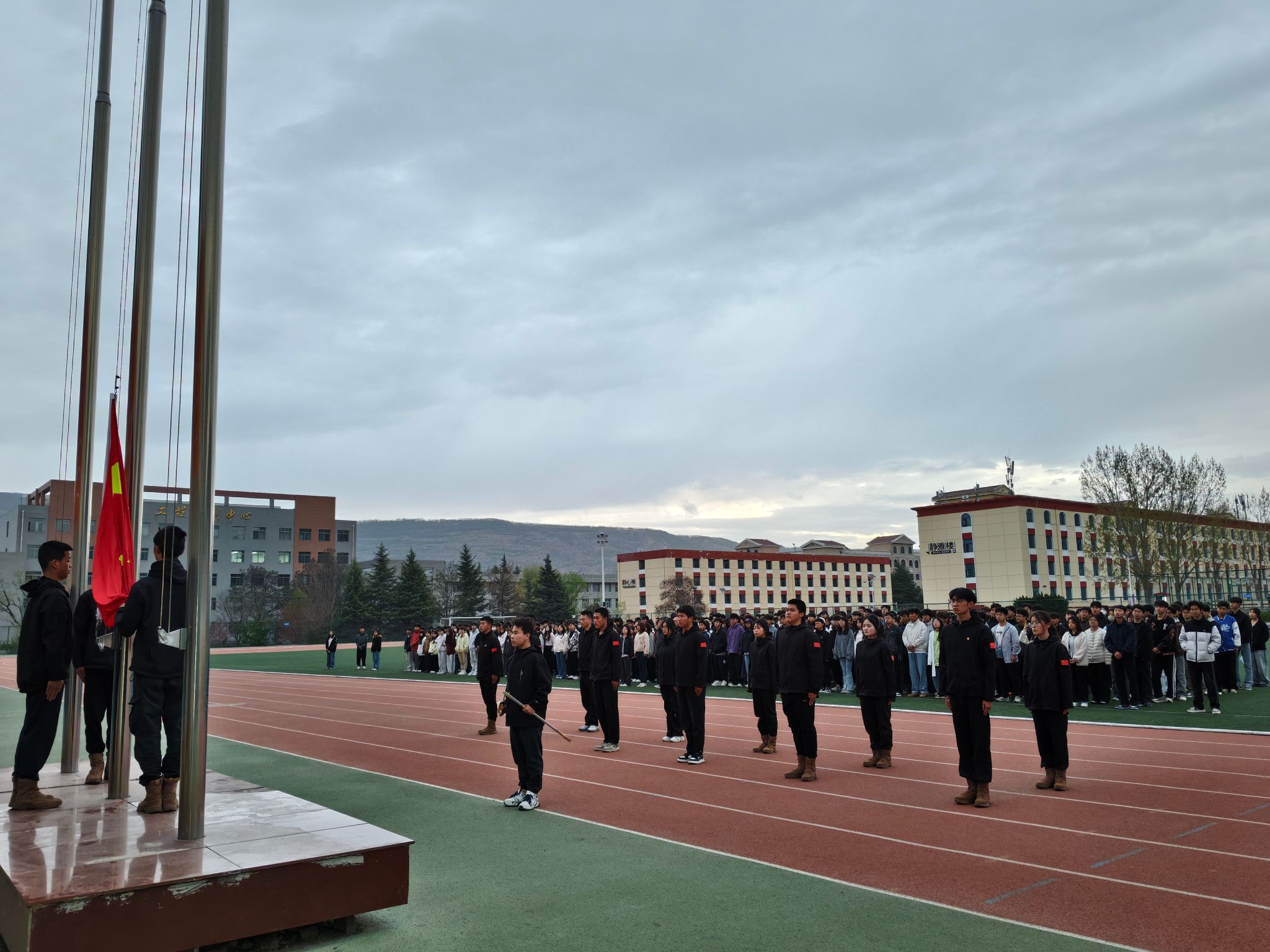 为厚植爱国情怀、强化使命担当、普及国家安全意识,4 月 7 日、13 日,电子信息学院在麦积、秦州两校区隆重举行升旗仪式。学院班子成员、全体辅导员、班主任及 2024 级、2025 级学生参加仪式。