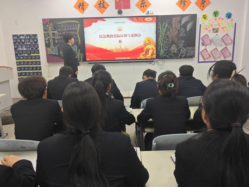 团课伊始,各班团支书首先播放了《民法典》宣传片引入主题,讲述了《民法典》对社会生活及国家发展的重要意义,有效地激发了同学们对《民法典》的认同感以及崇敬意识。其次各班团支书深入浅出的讲解了《民法典》中与同学们生活密切相关的法律条文,运用法律解读、案例分析、知识问答的多种形式,极大的丰富了同学们的法律知识,让同学们意识到《民法典》离我们并不遥远,它涵盖了生活的方方面面,是“社会生活的百科全书”,也为我们的生活成长保驾护航。