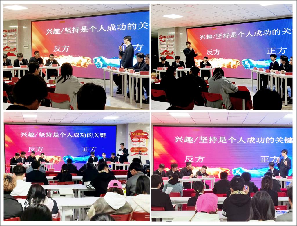 辩论赛通过攻辩环节、自由辩论环节,围绕学生职业生涯发展、就业方向选择等,确定了“在校大学生创业利与弊”“兴趣/坚持是个人成功的关键”等辩题,辩论赛各环节中辩手旁征博引、金句连连,活动气氛热烈。