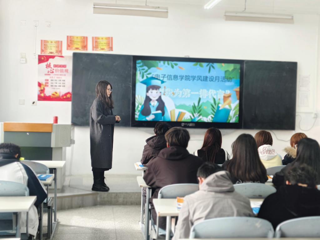 3月10日,电子信息学院以党建带团建为抓手,启动学风建设月“我为第一排代言”活动。活动由电子信息学院党总支统筹、团学联动推进,组织师生党员、入党积极分子、团学干部带头践行“前排行动”,通过亮身份、树标杆,激发学生学习内驱力,营造“乐学、善思、笃行”的校园文化氛围。