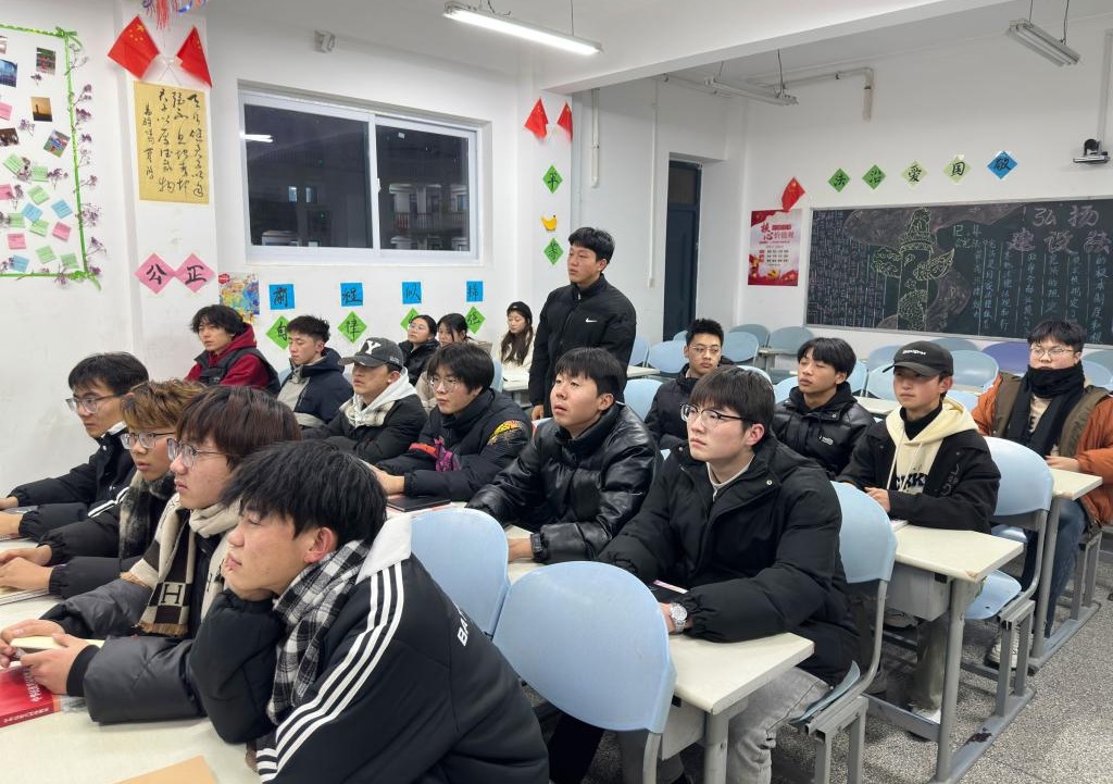 为响应党中央“加强高校学生思想政治教育”的号召,进一步提升大学生的思想政治素养,引导学生加强信念、培养品格、开阔视野,2024年12月19日,电子信息学院在二号教学楼自习室开展了第三期青马学员进班宣讲活动。电子信息学院团总支书记陈秋霞、团总支副书记、青马学员张生梅以及本学院24级全体学生参加活动。