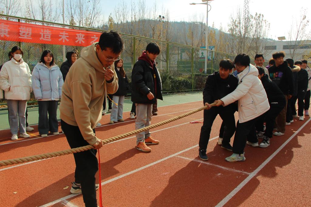 比赛现场气氛热烈而高涨,参赛队员们紧握长绳,咬紧牙关,全力以赴,展现出了顽强的拼搏精神和出色的团队协作能力。助威声此起彼伏,跃动的倩影形成了一道美丽的风景线,衬出靓亮的青春。