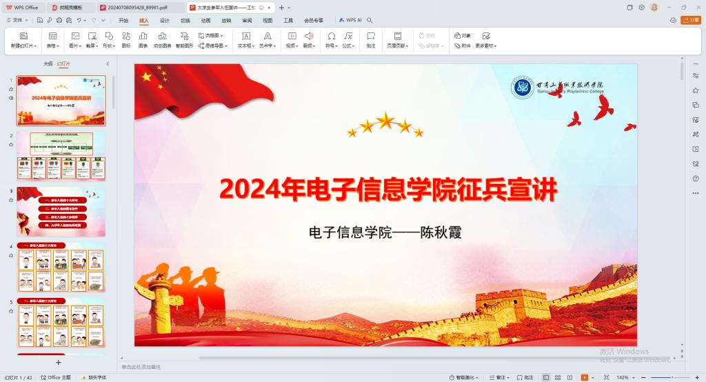 近日,电子信息学院成功举办了24届毕业生线上征兵宣讲活动。本次活动旨在通过模拟话术的形式,向即将走出校园的毕业生们传达国家征兵政策的主要信息,鼓励他们积极投身国防事业,用青春和热血书写人生新篇章。