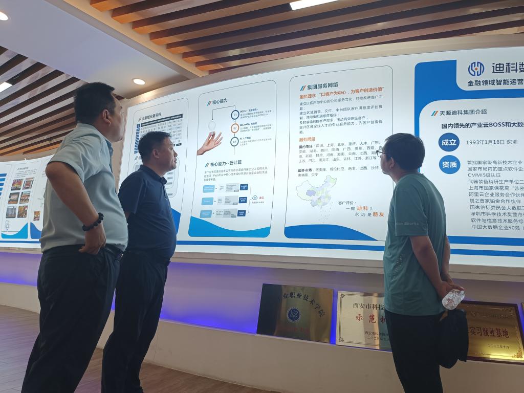 西安迪科数金智能科技有限公司是集人工智能行业应用系统集成服务、技术咨询服务、大数据服务、基础软件开发、网络与信息安全软件开发、智能机器人研发等为一体的企业,2021年已与我校建立了合作关系,是我校学生实习和毕业生就业基地。现有我校毕业生、实习生40余人。企业岗位设置合理,与我校计算机应用技术、大数据与会计等相关专业设置匹配度高。下一步,双方将进一步深化校企合作,不断提高技术技能人才培养质量。