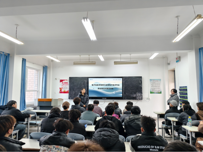 为深化产教融合,创新人才培养模式,扎实推进“工学交替”教学改革,12月23日,电子信息学院举行应用电子技术专业2024级学生就业岗位对接宣讲会。宣讲会由专业负责人、指导教师及企业导师主讲,应用电子专业24级全体学生参加。